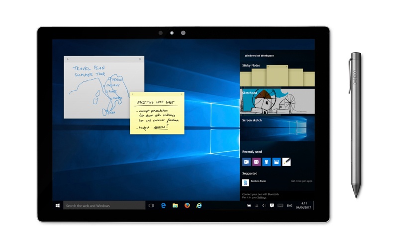 在螢幕上輕點 Windows Ink Workspace 圖示或你愛用的應用程式,即可開始書寫 — 無需繁複配對。